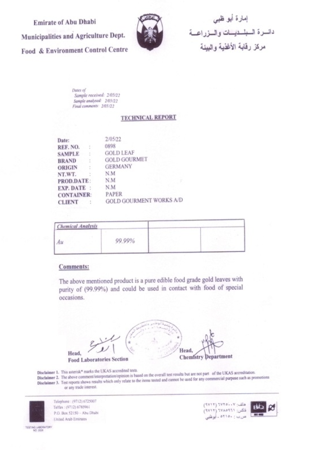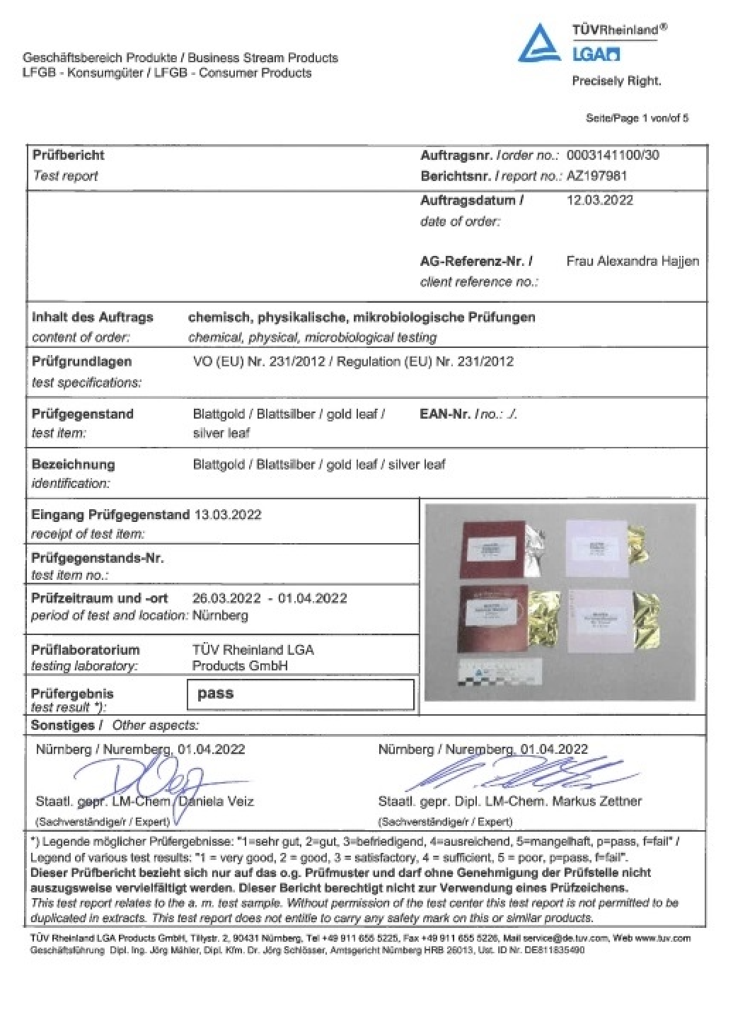 Our detailed report on Gold and Silver guarantees that every material used meets the strictest industry standards. This certification showcases our commitment to transparency, ensuring the purity, safety, and exceptional quality of all our precious metal-infused products.